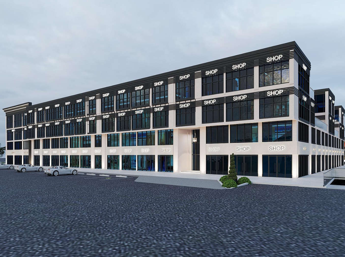 | التصميم المعماري | طابق أرضي + أول علوي محاط بساحة مركزية (Open Plaza) |