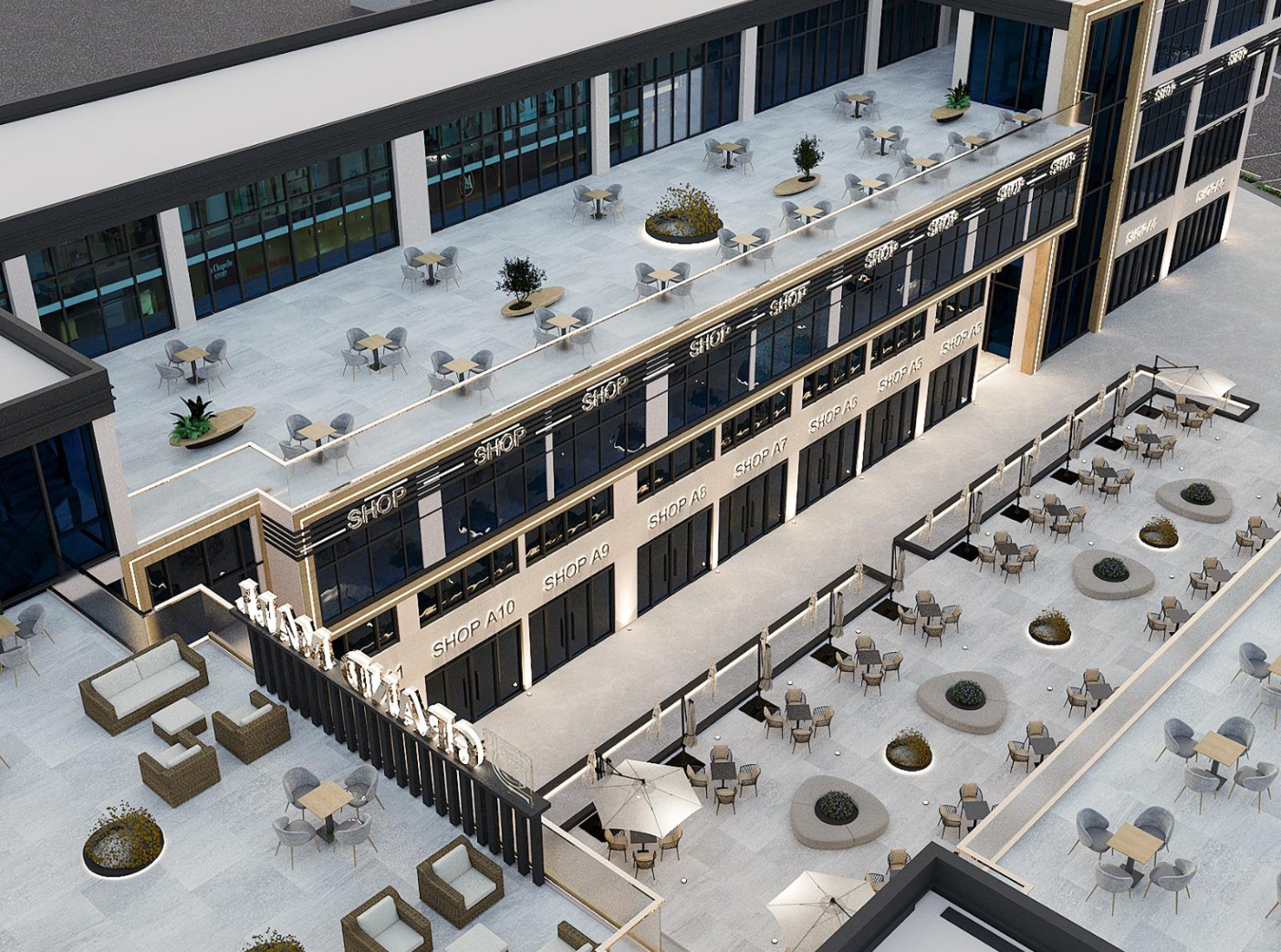 - البلازا المركزية: مساحات مفتوحة ولاند سكيب لخلق تجربة تسوق فريدة.